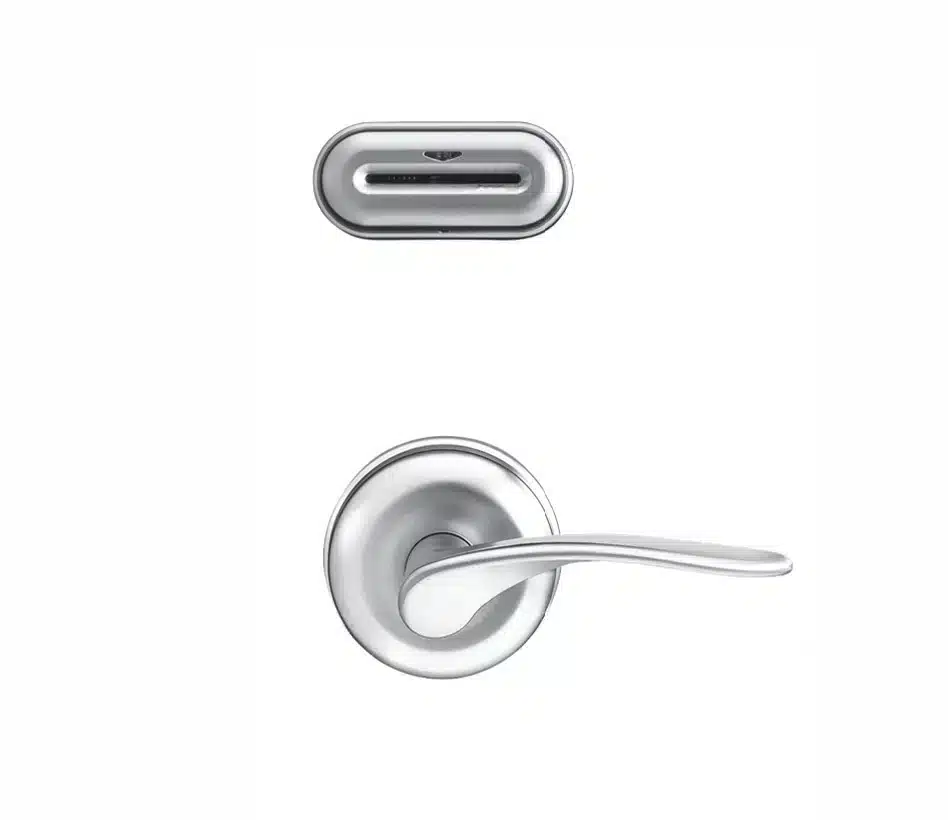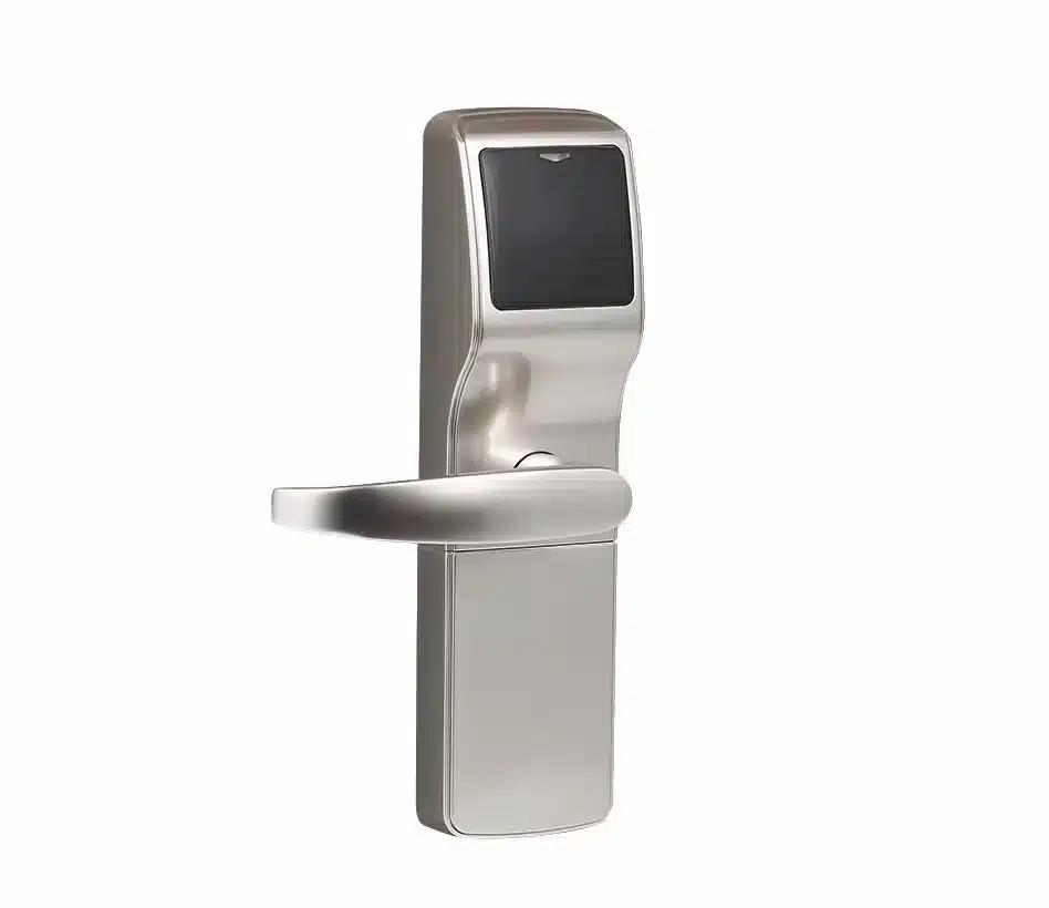 An electronic lock grants authorized keycards access at specified times and dates and records all opening events. This reduces liability risks, enhances hotel security, and simplifies staff management.